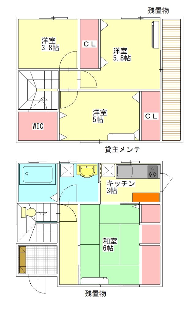 和室6畳 1階 1室 K3畳 1階 1室 洋室5.8畳 2階 1室 洋室5畳 2階 1室 洋室3.8畳 2階 1室 |